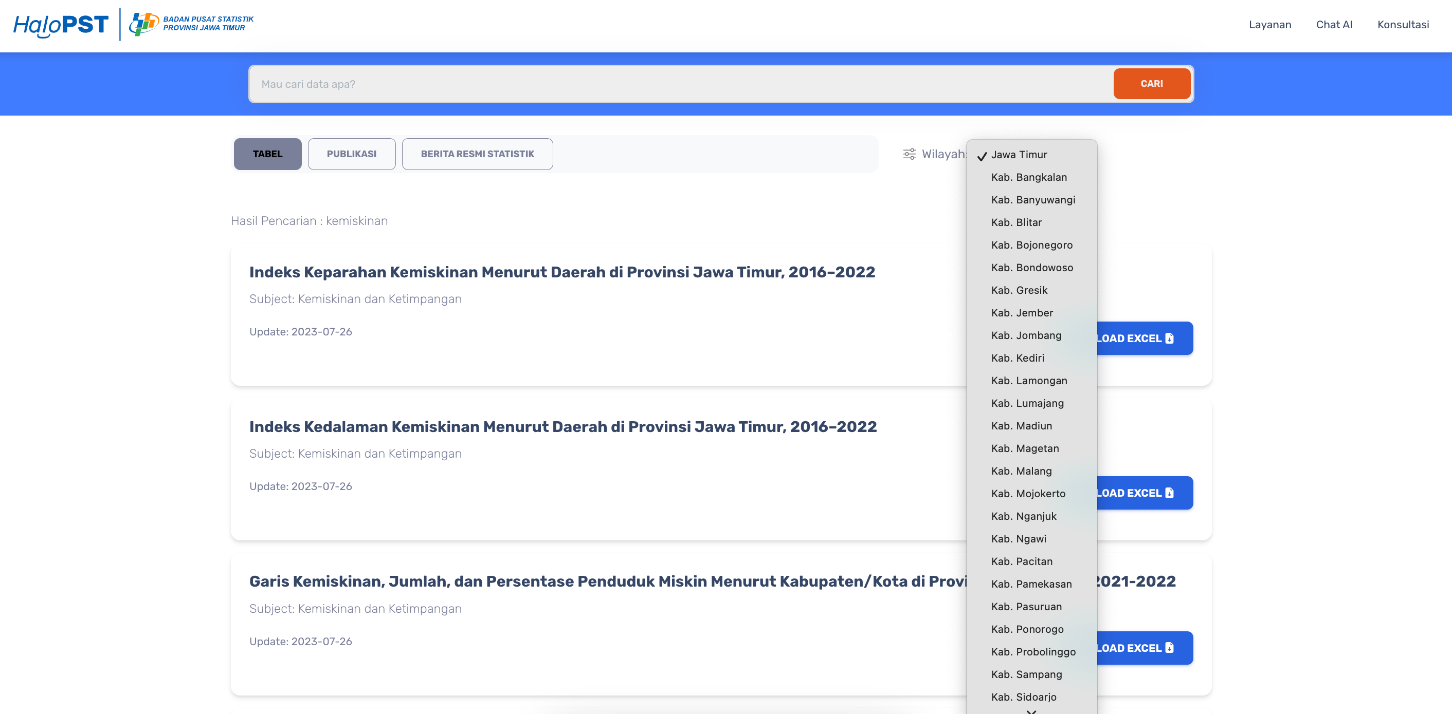 Anda juga dapat memilih data berdasarkan wilayah dengan mengganti wilayah pada **kotak pencarian Wilayah** di bagian kanan atas.